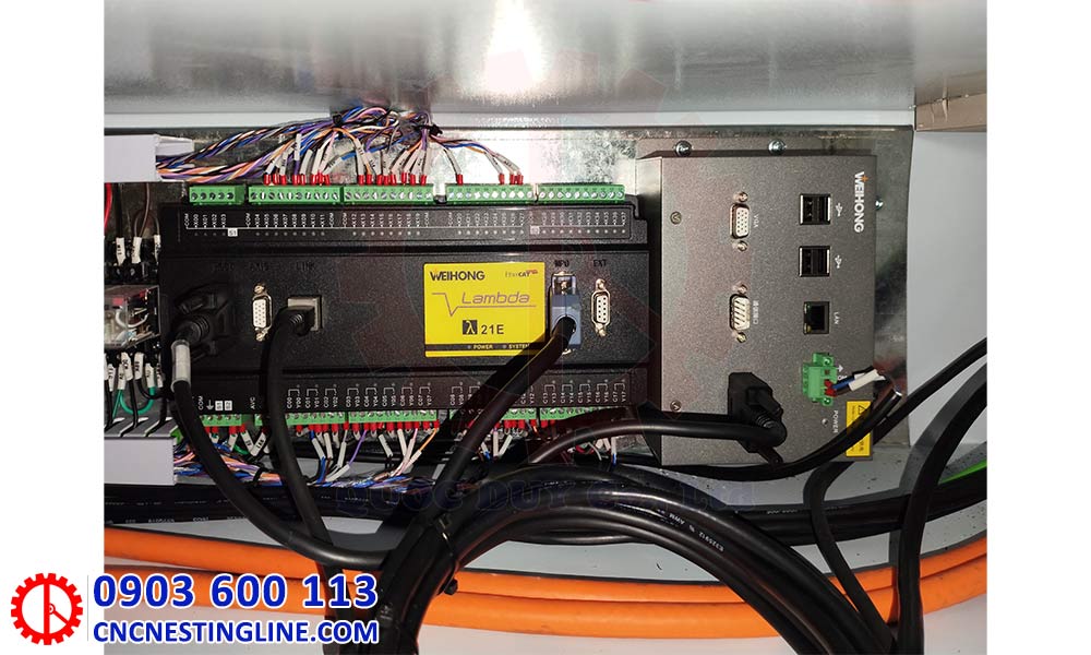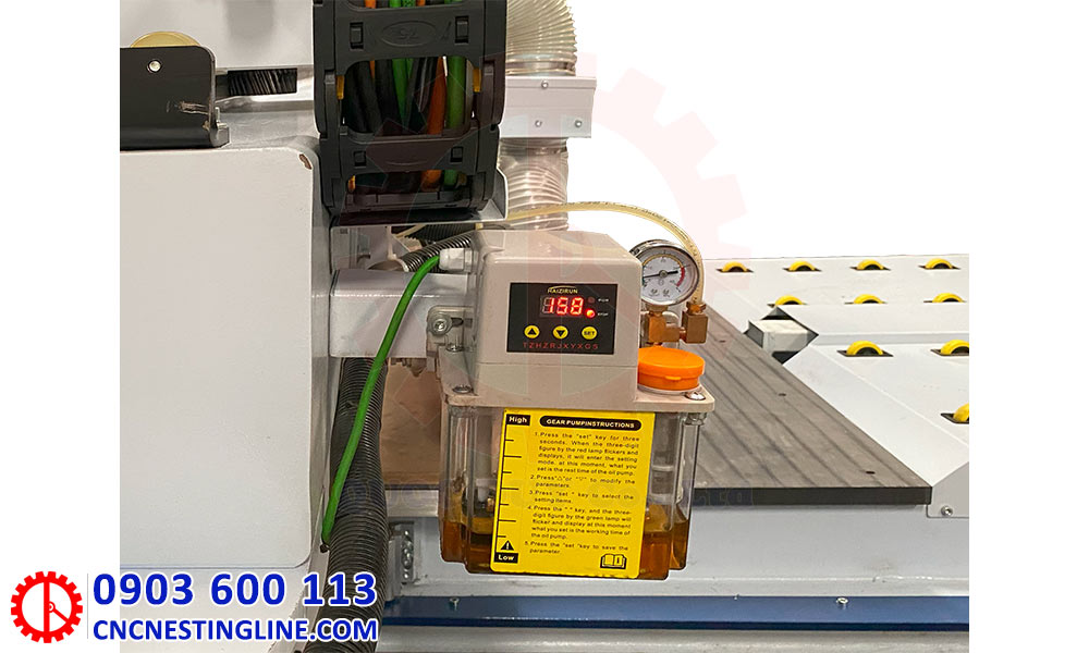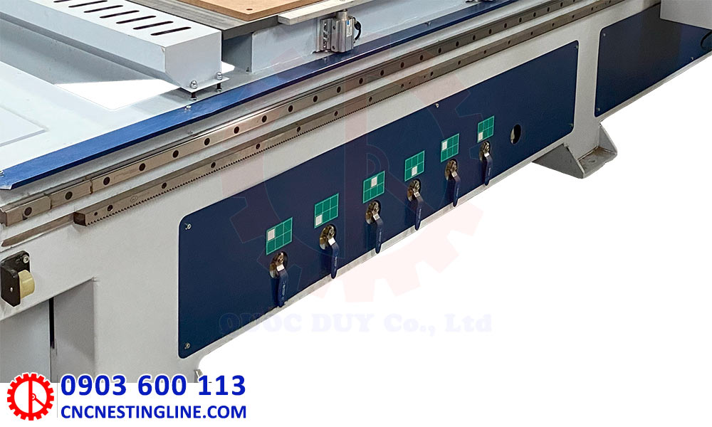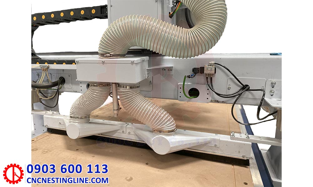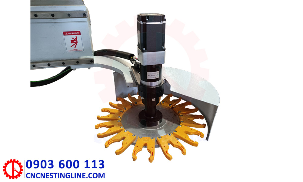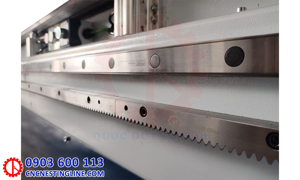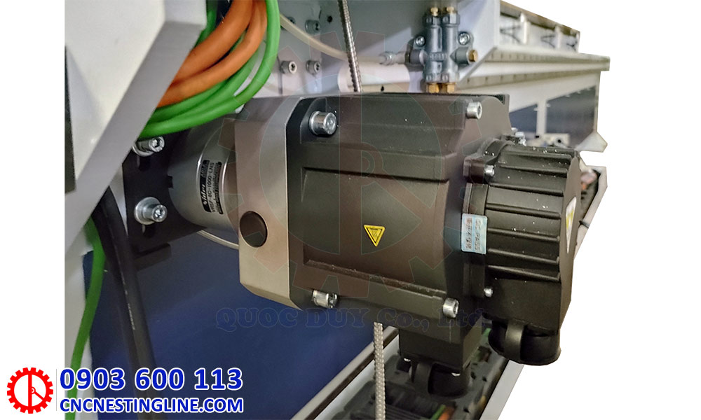 Máy cnc 1 đầu atc lưỡi cưa 270 độ cùng trục Y được trang bị bộ giảm tốc, đảm bảo quá trình gia công diễn ra ổn định, nâng cao hiệu suất làm việc.