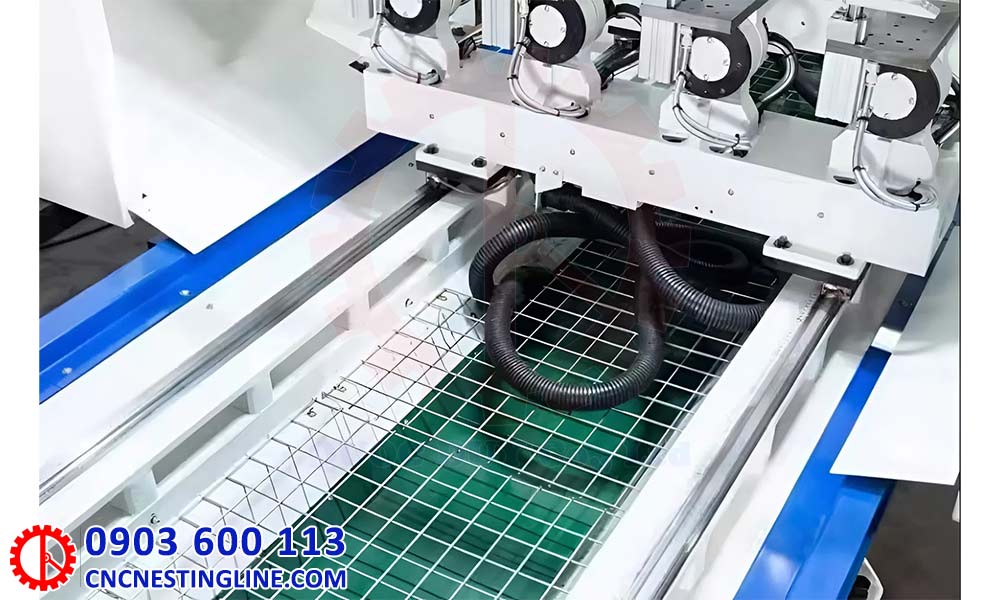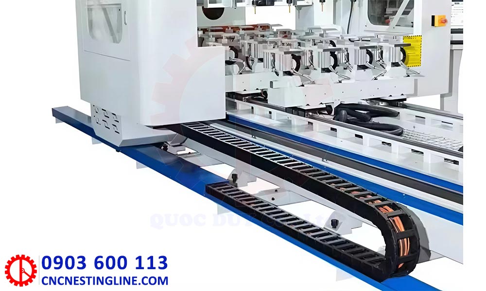 - Khung máy làm mộng âm dương CNC chắc chắn, hệ thống làm mát hiệu quả và băng tải dăm thông minh đảm bảo chất lượng sản phẩm đồng đều, độ bền cao.